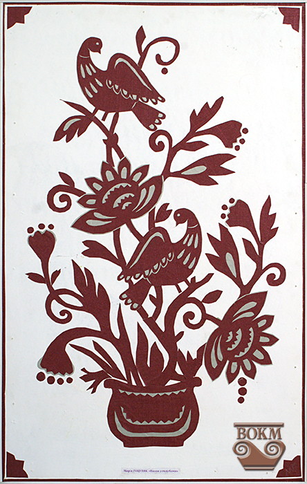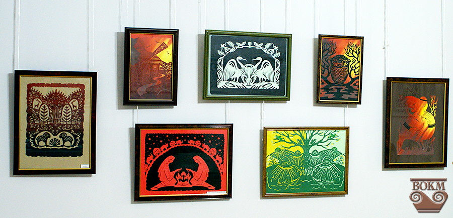На виставці, зокрема, представлені тематичні витинанки, у яких розкрита поетика і філософія українських обрядів (серія була відзначена у 2004 р. премією ім. Івана Огієнка). Серед творчих вподобань Марії Василівни на певному етапі з’явилося й народне малярство, у якому вона змогла поєднати традиції і суто власне бачення. У її роботах постає чарівний світ наддністрянського села з його прекрасною природою і розміреним плином життя, де людина існує у гармонії з оточуючим світом. Привертають увагу твори, у яких відображено побут та історію нашого краю – вони наповнені ліричним почуттям і м’яким гумором, притаманним авторці.