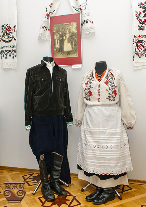 Родзинка виставки – сорочка з ружами, вишита для передвесільного суботнього вечора, коли наречена збирала подруг – дівчат для плетення вінка. У цій сорочці Марія Іванівна є на фото в експозиції. Весільні штани-галіфе Івана Євдокимовича пошиті сільським шевцем Федором Дорошем, який під час Другої світової війни, перебуваючи у полоні, виготовляв одяг для німецьких солдатів. Чоботи прабабусі Степаниди, шиті сільським шевцем с. Янева, передавалися жінкам родини з покоління в покоління.