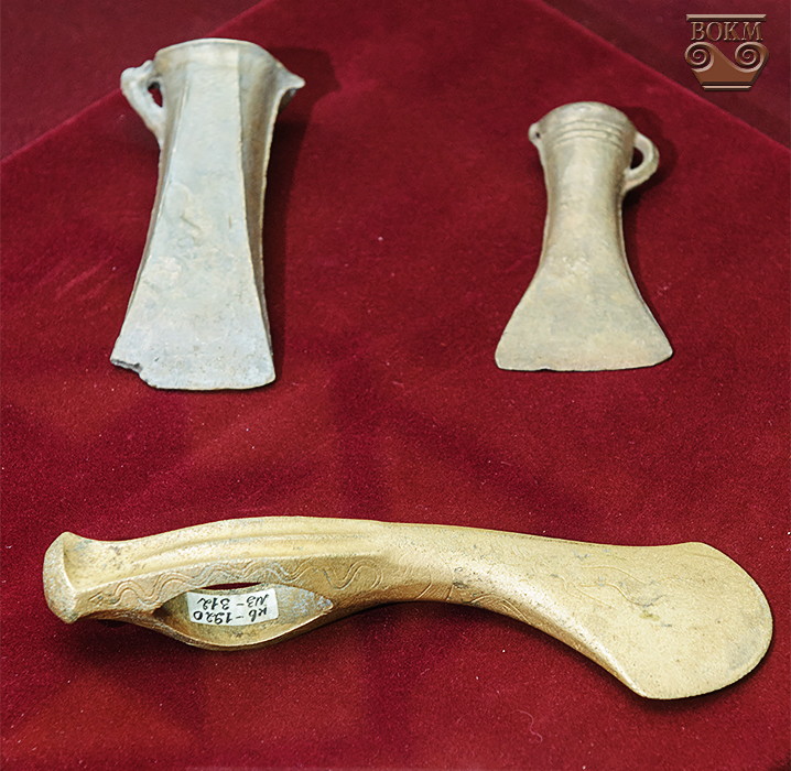 Прямими нащадками рубила можна вважати сокири, які завдяки своїй універсальності, були популярним видом зброї протягом тисячоліть. На виставці представлено зразки від крем’яних сокир часів неоліту (VII-V тис. до н. е.) до чудових парадних металевих сокир доби пізнього середньовіччя та нового часу.