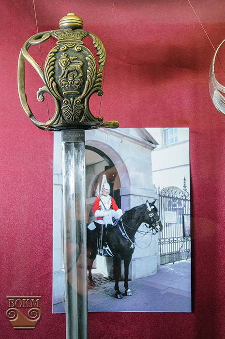Особливу увагу привертає англійський палаш початку ХІХ ст. офіцерів Лейб-гвардії кінного полку у відмінному стані (з гравіюванням «Hamburger & Co»). Палаш є різновидом довгоклинкової холодної зброї колючо-ріжучої та рублячої дії. Ця зброя використовувалась у славнозвісній битві при Ватерлоо і є яскравим втіленням тогочасної епохи. У дизайні та функціональному призначенні палаша відчутний вплив німецьких тенденцій у виготовленні такого виду зброї. Безперечно, предмет становить світову історико-культурну цінність.