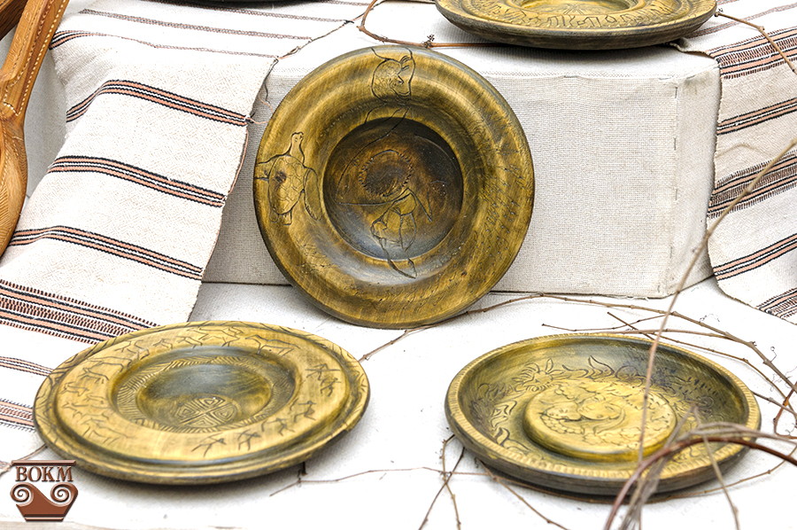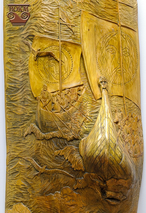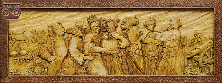 Майстер знімає з дерева одяг-кору, показуючи світові гладеньку шкіру теплих золотистих відтінків, а тоді суцільно вкриває його різьбою. Він не ріже дерева під свої образи, а бачить картину, сховану всередині. Сюжет гармонійно вписується в саму фактуру дерева, маленький сучок стає коров’ячим вухом, більший – віссю воза, ще більший – головою вола. У використанні теплі, лісові, природні матеріали, переважно, липа, буває черешня.