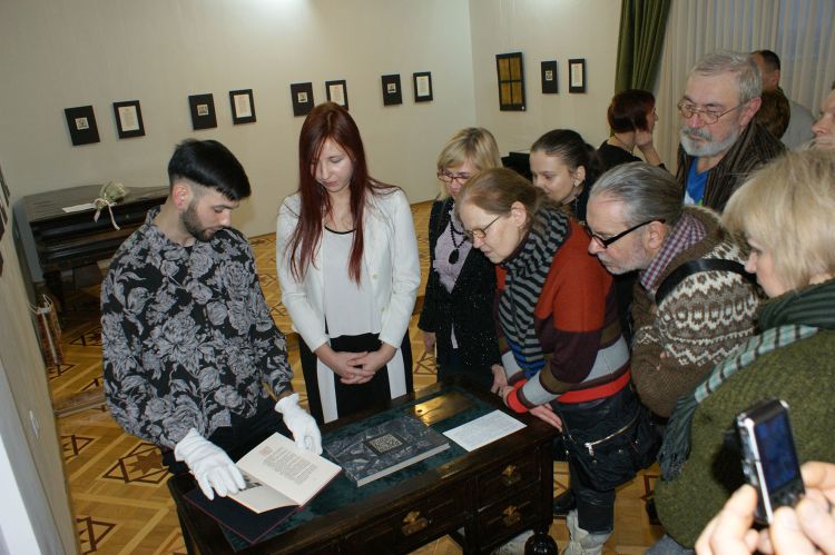 Атмосферу мистецької майстерні створюють інструменти та матриці для друку офортів, для сліпого тиснення палітурки, орнаментики сторінок, тощо.