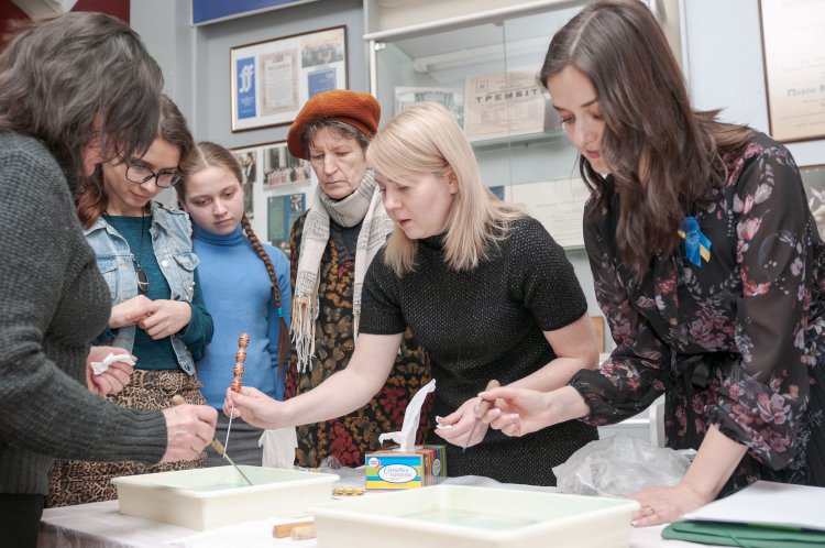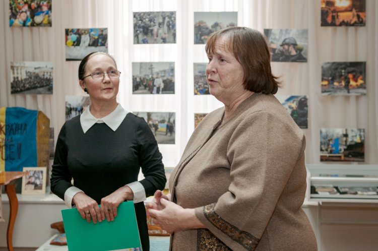 Під час відкриття виставки демонструвалися документальні кадри про життєвий і творчий шлях Героя України та відбувся майстер клас молодої художниці Оксани Веремієнко.
