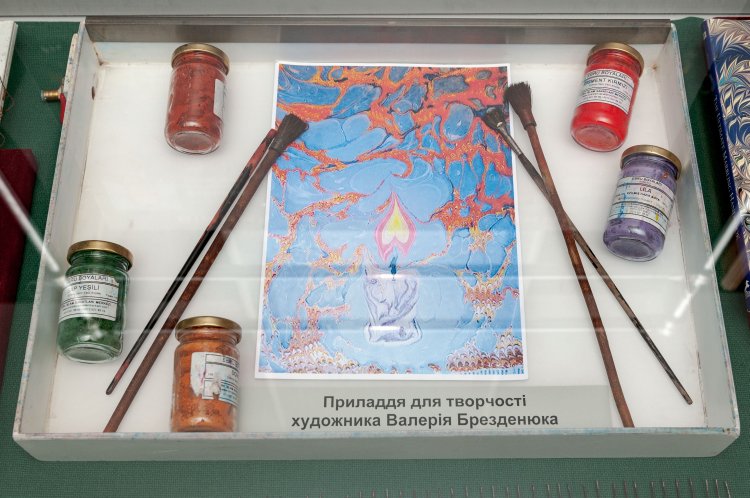 На виставці представлені нагороди, світлини, особисті речі Валерія Брезденюка. Окремий розділ становлять унікальні роботи художника у техніці ебру (малюнок на воді). За своє життя Валерій Брезденюк створив понад 500 картин, для створення яких йому були потрібні лише чиста вода, фарби і трохи фантазії, аби за лічені хвилини на водяній основі розцвіли квіти, злетіли фантастичні птахи, засяяв підводний світ та зашуміли буйні ліси…