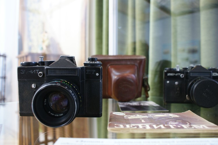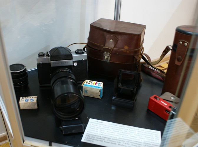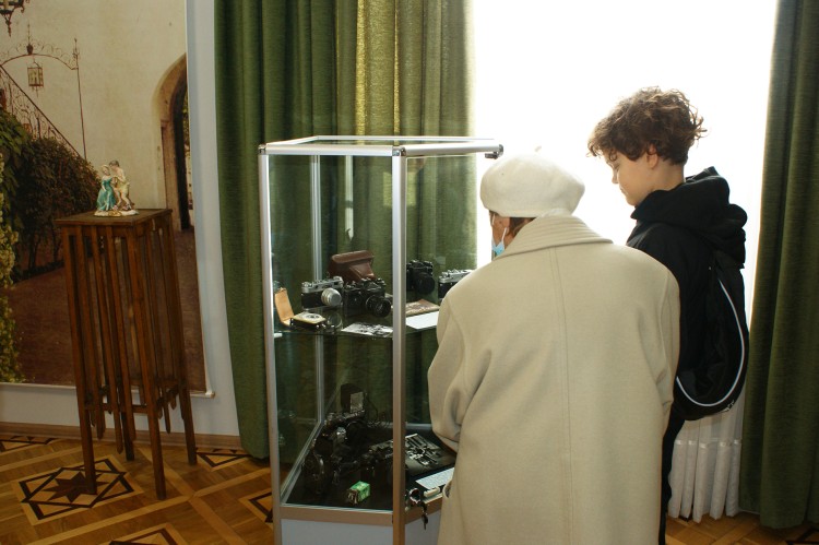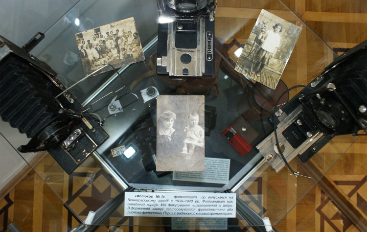 На виставці представлені понад 30 фотоапаратів («Фотокор 1» 1930–1940-их рр., різні моделі фірм «Зенит», «Мир», «Киев», «Смена», «Kodak» «Poloroid» та інші), різноманітна фотографічна техніка та обладнання (плівки, фотопапір, дальномір, експонометри, фотозбільшувач, глянцувач тощо).