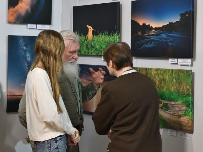 Галина розповіла, якою глибокою людиною був Денис, як захоплювався улюбленою справою та мав дар помічати найменші деталі: днями готувався й очікував моменту для вдалого кадру. Відвідувачі дізналися про його захоплення неймовірною пам’яткою природи – «Бузьким Гардом» та теплі історії створення багатьох робіт.