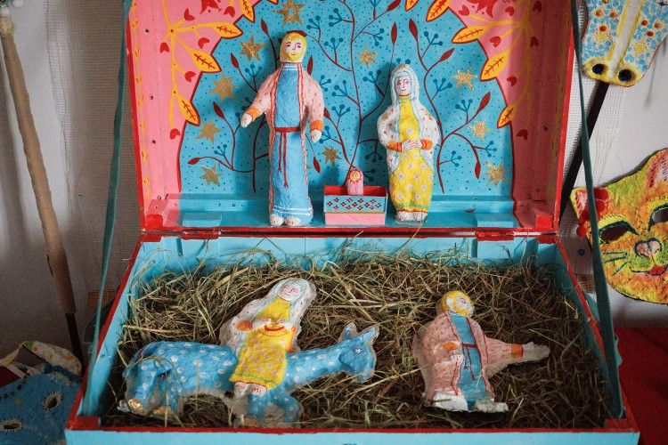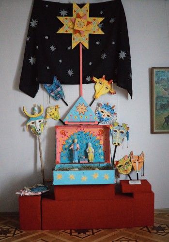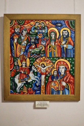У центрі експозиції свято, на яке ми очікуємо – Різдво, зокрема, такий особливий жанр як Різдвяний вертеп – візуальна частина представлена роботами колаборації вінницьких митців на базі арт-центру MŌNТАЖ та родинною колекцією мисткині Юлі Гушул.