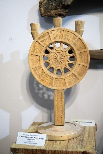 З давніх часів календар українців оснований на землеробському укладі життя, віхами якого є природні ритми, відзначені певними ритуалами. Датування зазнає трансформацій у часі, але світоглядний спадок наших предків залишається в традиціях. Про давній слов’янський літопис, що починався від весни, нагадують в експозиції твір Василя Слободянюка за мотивами черняхівської посудини з календарними символами, віднайденої відомим українським археологом Вікентієм Хвойкою на поч. ХХ ст., а також орнаментоване ярмо з подібними елементами.