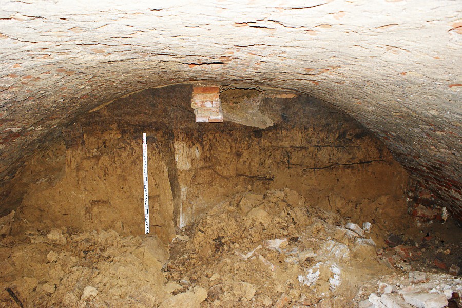 Зверху розташували експонат, цю глиняну піч, яка і вберегла від трагедії, бо якби її не було, паркет міг провалитись просто під ногами у відвідувачів. Поки що скарбів, або цінних артефактів у підземеллі не знайшли. Вже відомо, що там є два підвальні приміщення. Але вони не очищені до кінця. Треба зняти шар грунту приблизно в метр товщиною. Висота підвалів близько 2 метрів, площа – 30…40 м2, є залишки обваленої колони, виступи. У знайдених нових-старих приміщеннях планується розмістити нову експозицію.