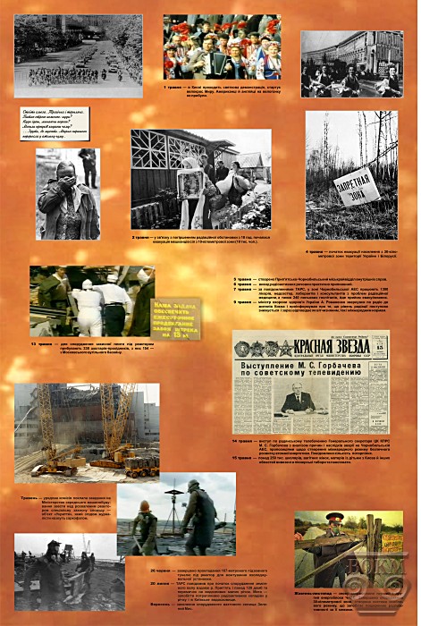 Матеріали виставки висвітлюють у хронологічному порядку події, що відбувалися на ЧАЕС, в Україні та в світі, починаючи з моменту вибуху до сьогодення.