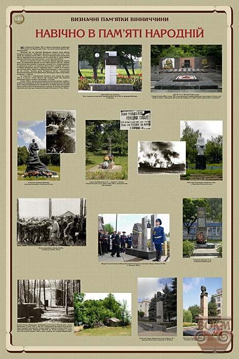 Пересувна виставка створена на 18 стендах розміром 1,5 х 1,0 м (повнокольоровий друк) з металевими підставками. Дізнатись додаткову інформацію та замовити виставку ви можете за тел. 67-20-93.