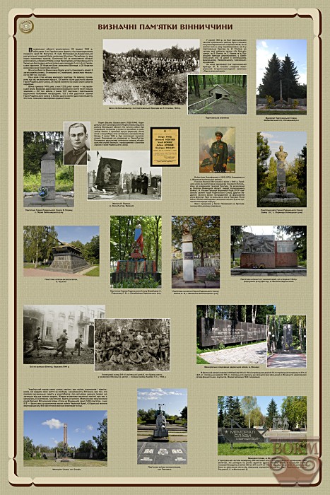 Розділ виставки містить такі підрозділи: фашистська навала, укріпрайони, оборона області, підпільний і партизанський рух, визволення й розповідає про лихоліття війни та про пам’ятки, які залишилися сумними свідченнями втрат та героїзму на вінницькій землі.