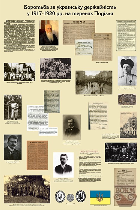 Важливою віхою на шляху здобуття незалежності України стали національно-визвольні змагання (1917-1921), коли різні національні уряди: Центральна Рада, Гетьманат, Директорія намагалися перемогти у боротьбі за суверенітет України. В епіцентрі цих подій було Поділля. Тут впродовж 1917-1920 рр. неодноразово змінювалася влада, перебували урядові структури Української Народної Республіки, діяли регулярні військові з’єднання та повстанські загони, гриміли криваві бої.