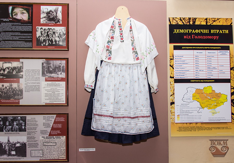 Експозиція відтворює і трагічні сторінки нашої історії 30-х років XX ст.: голодомор та великий терор. Серед матеріалів, присвячених висвітленню голодомору, увагу глядачів привертають документи Сосонської сільської ради, в актових книгах якої вказано на причину смерті людей в 1932-1933 рр. — "від голоду". Представлені також "поминальники", в які записувались імена тих, хто помер від голоду. За підрахунками вітчизняних вчених жертвами голоду на Поділлі стали від 800 тис. до 1,5 млн осіб.